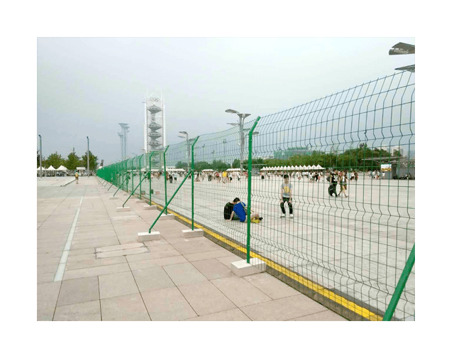 采用冷拔低碳熱鍍鋅鋼絲焊接而成,整張無拼接。三個加強彎使網(wǎng)片更加結(jié)實,牢固,繃直,不易彎曲。立柱采用全鋼圓形型材,材質(zhì)為Q235,立柱高度不小于2550mm;每根立柱加一個斜撐,水泥墩尺寸:500×300×150 mm。